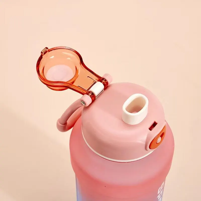 Grande capacidade gradiente cor chaleira fosco copo plástico palha copo esportes água portátil copo